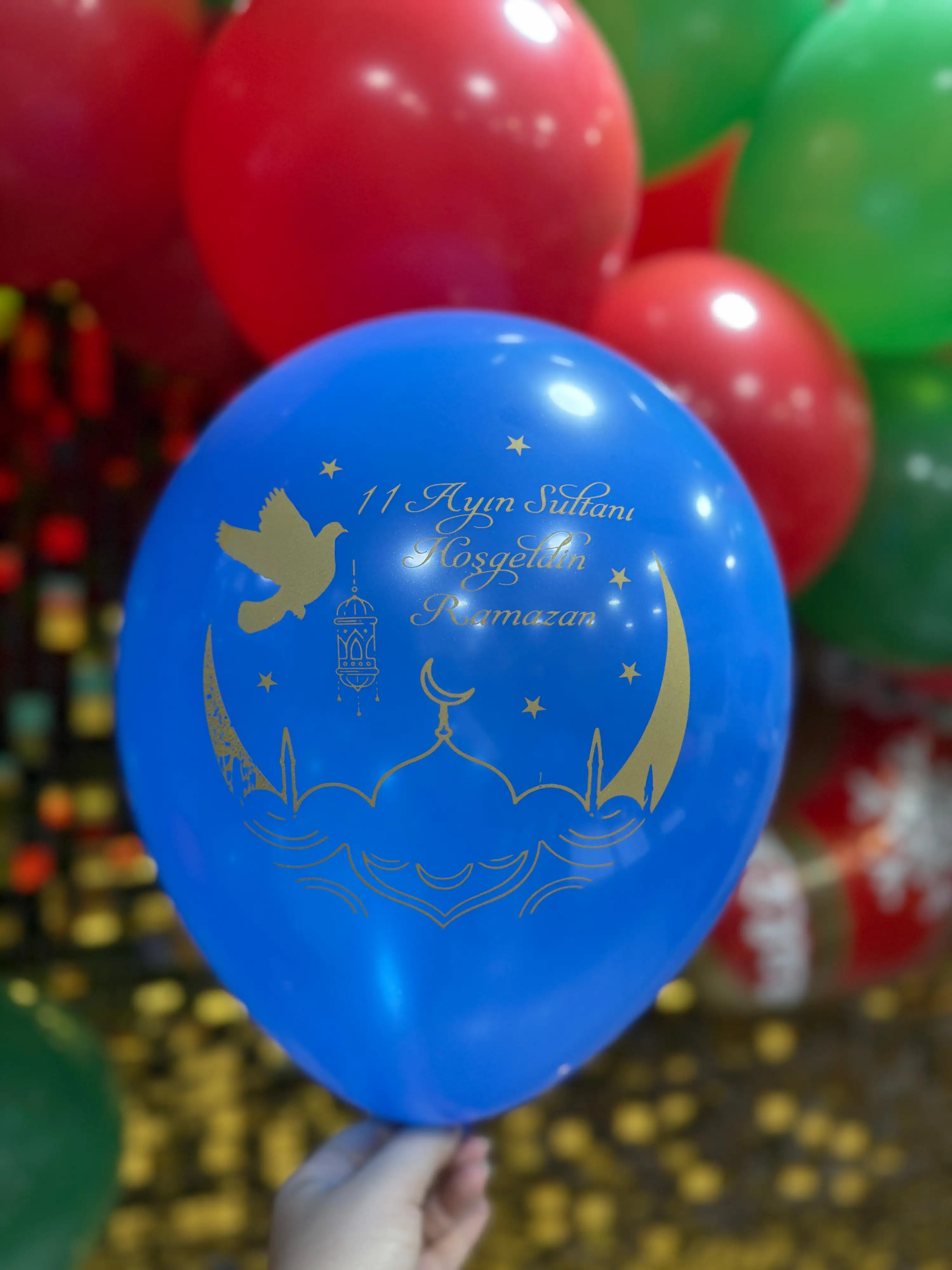 - Ramazan Baskısı: Balonlar üzerinde Ramazan temalı özel bir baskı yer alır. Bu baskı, Ramazan ayının ruhunu yansıtarak organizasyonlarınıza estetik bir dokunuş katar.